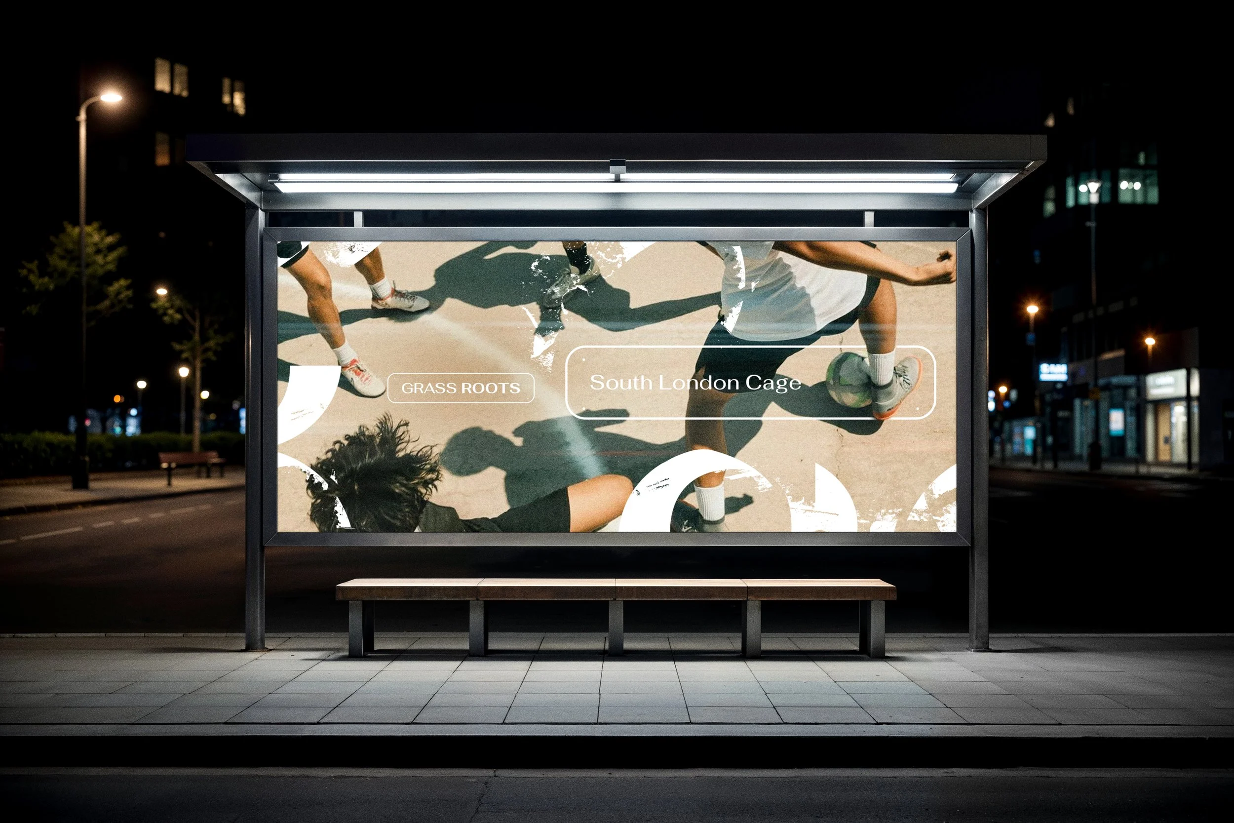 Grass Roots celebrates football beyond the stadium — the streets, cages, parks and beaches where the game truly lives. Built around the idea that the world is your pitch, the identity draws from street signage as a symbol of place, ownership and local pride. The visual system balances structure with expression, subtly referencing the rawness of graffiti and street typography to introduce texture and edge across campaign applications. An urban-informed colour palette reflects the environments where the game is played, while a bold, sport-led typeface reinforces energy and momentum.