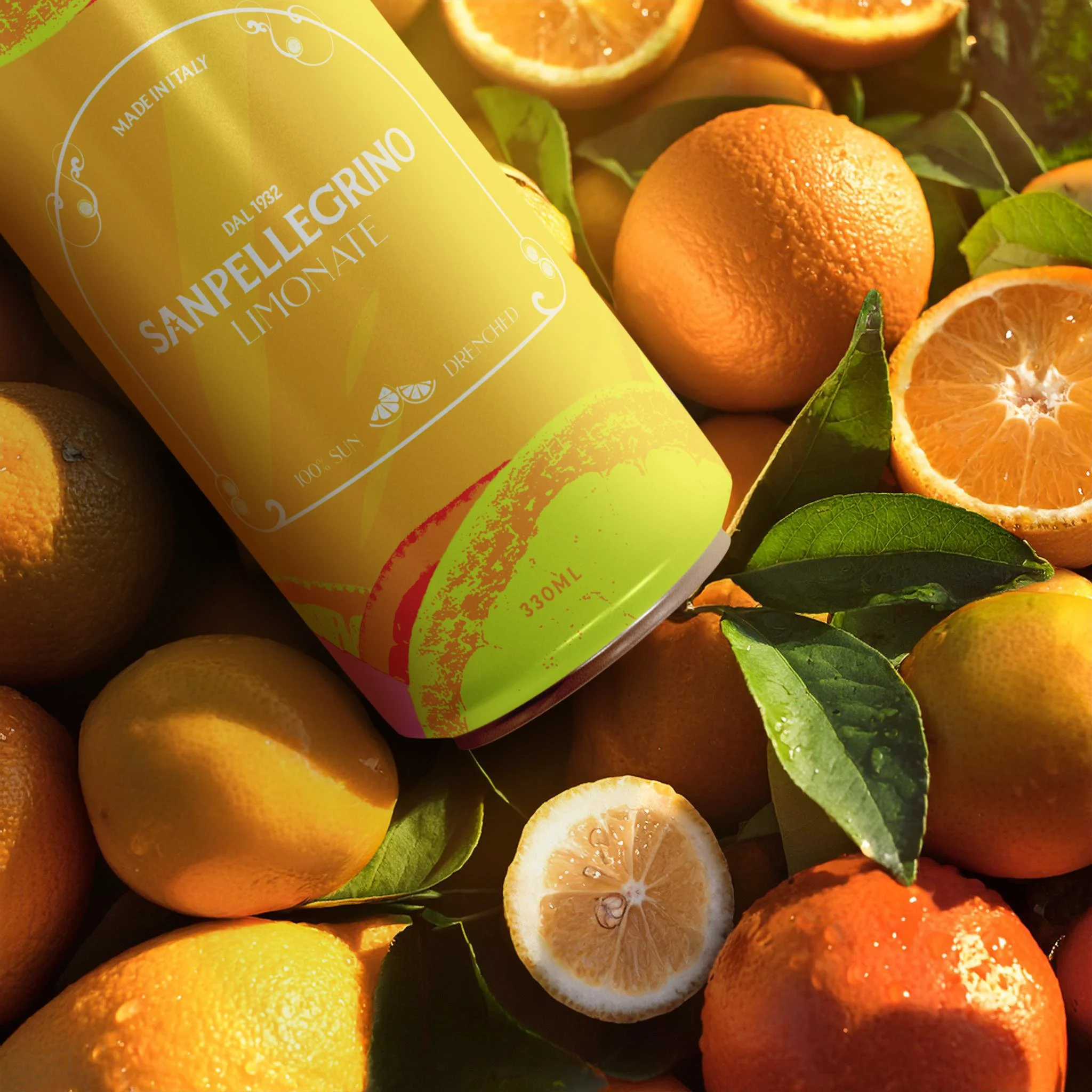 To enhance the sensory experience of SanPellegrino's fresh ingredients, the brand's colour palette was crafted from the very hues of the fruits themselves, bringing their vibrant colours to life on packaging and branding.