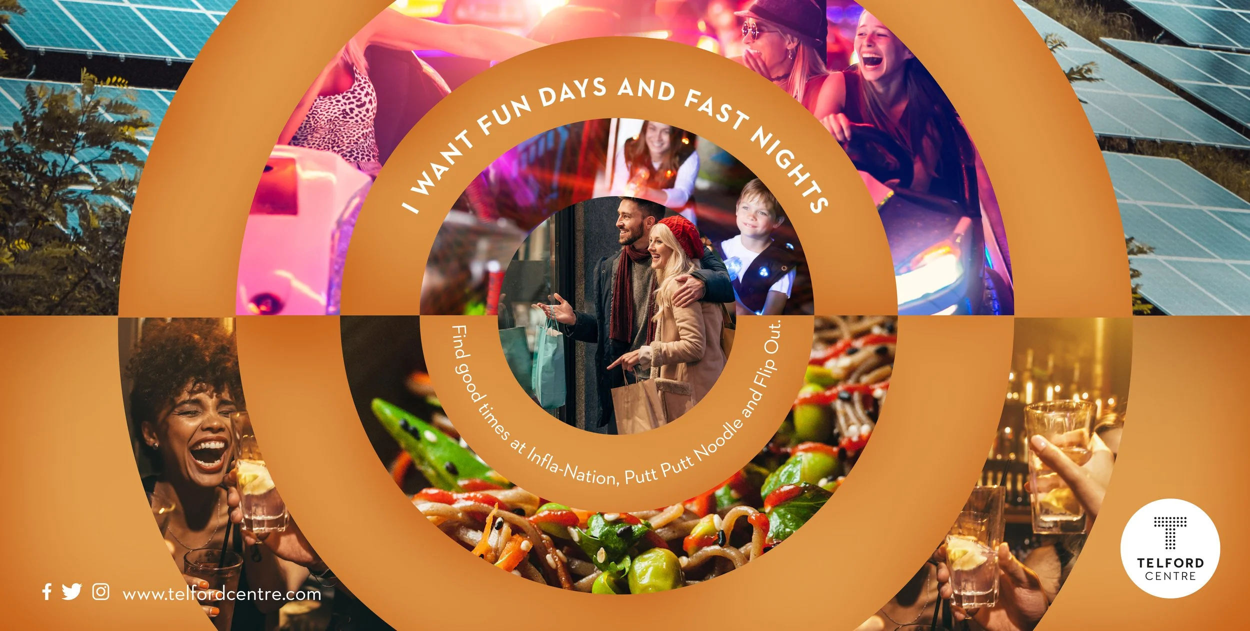 The identity builds on Telford’s circular logo, using it as a flexible system to frame imagery and messaging across all channels.