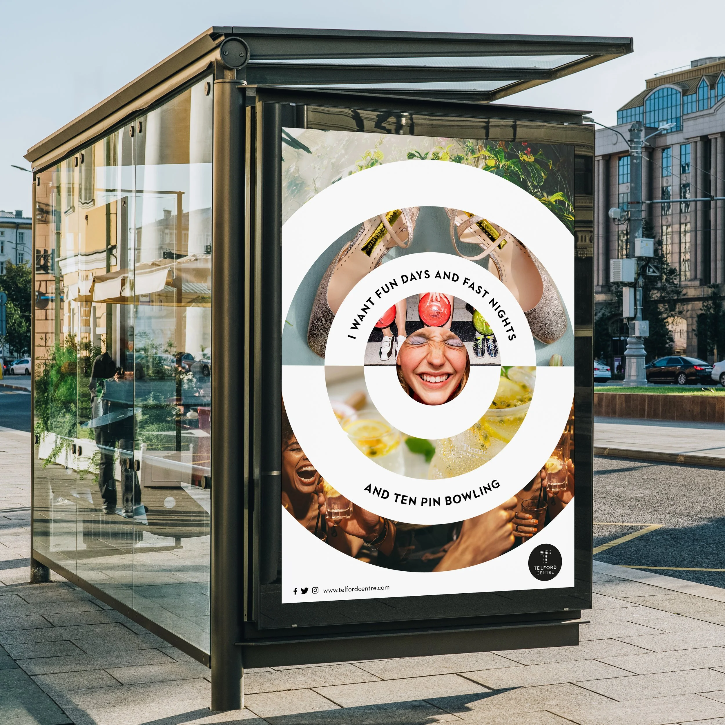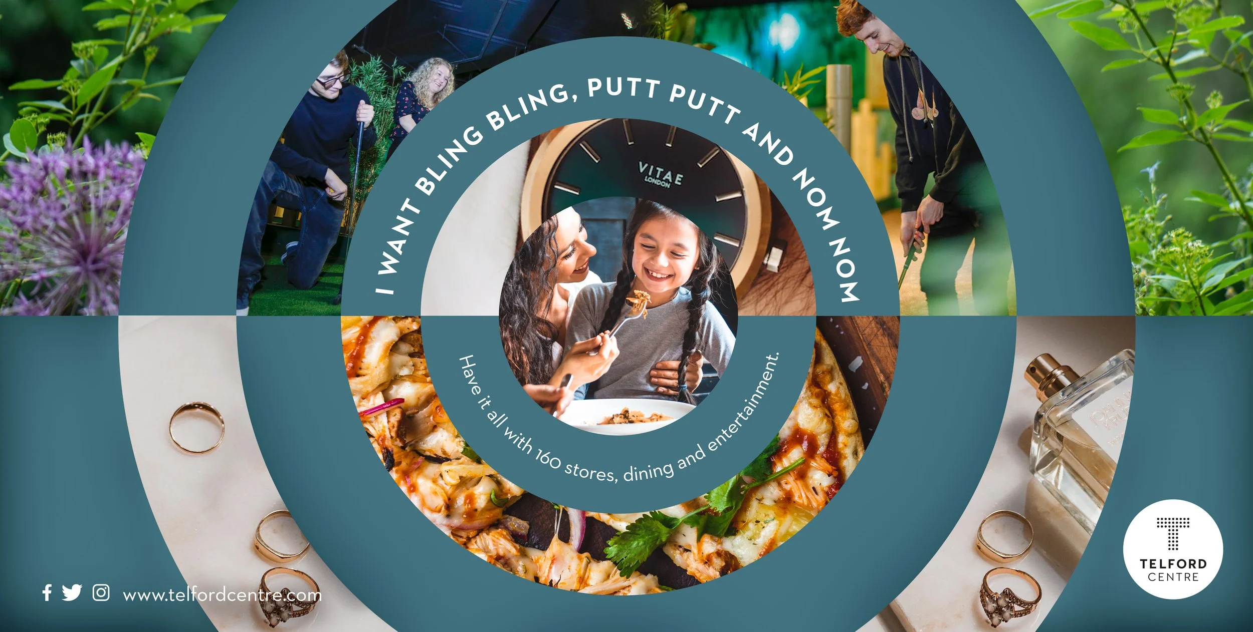 Telford Shopping Centre wanted to rebrand around its new restaurants and entertainment, encouraging customers to “Live in the Moment.”