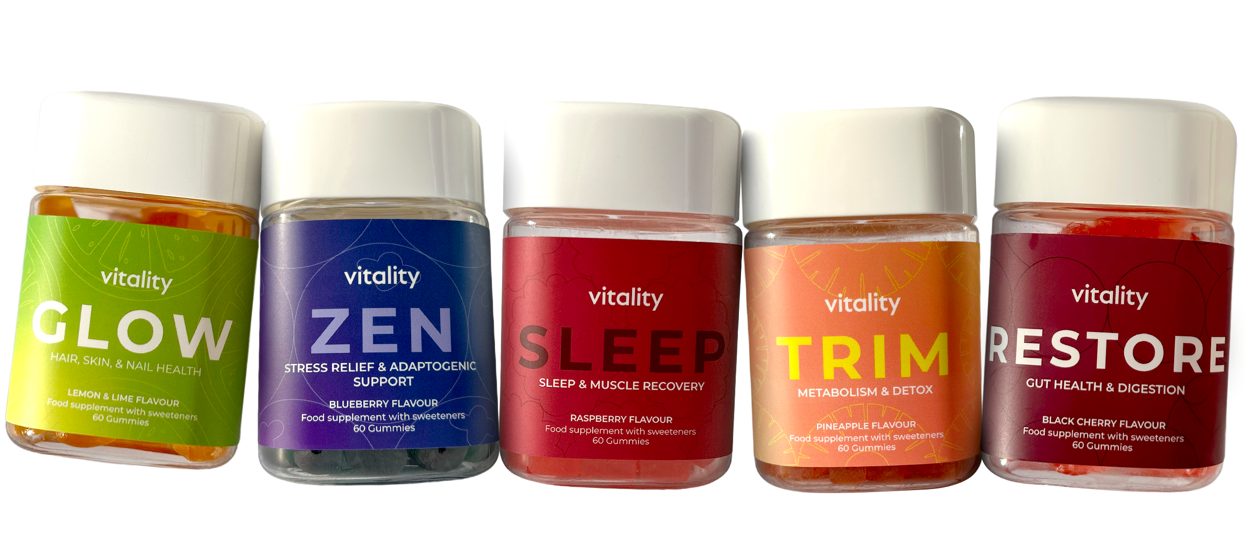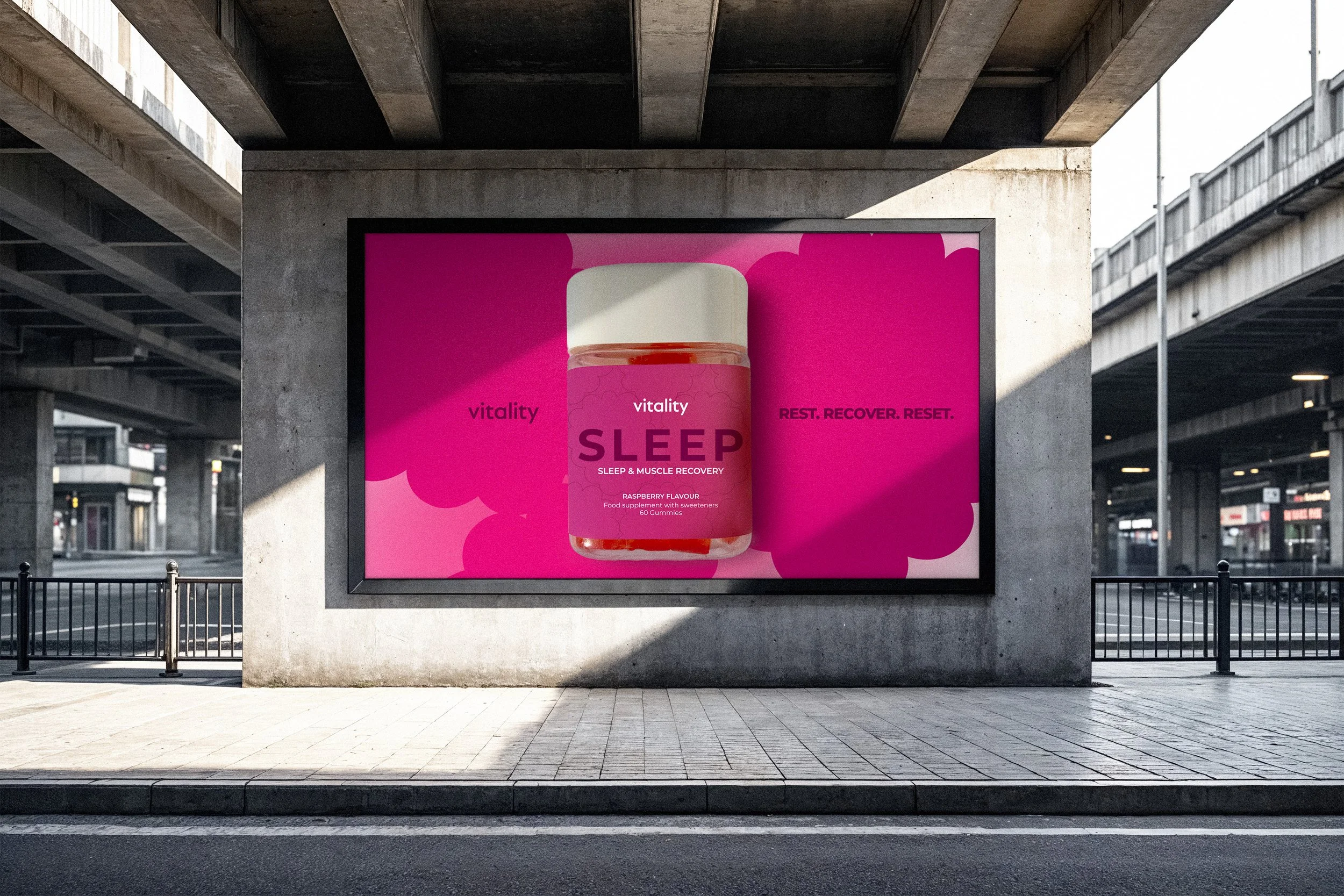 Key projects included leading the rebrand of Vitality’s gummy packaging, transitioning to a more sustainable pouch format and introducing a bold, cohesive visual system to improve shelf impact. I also led the creation of a new sub-brand, Vitality Vitamins, developing the brand identity, packaging range, and art direction across photography, web, and social.