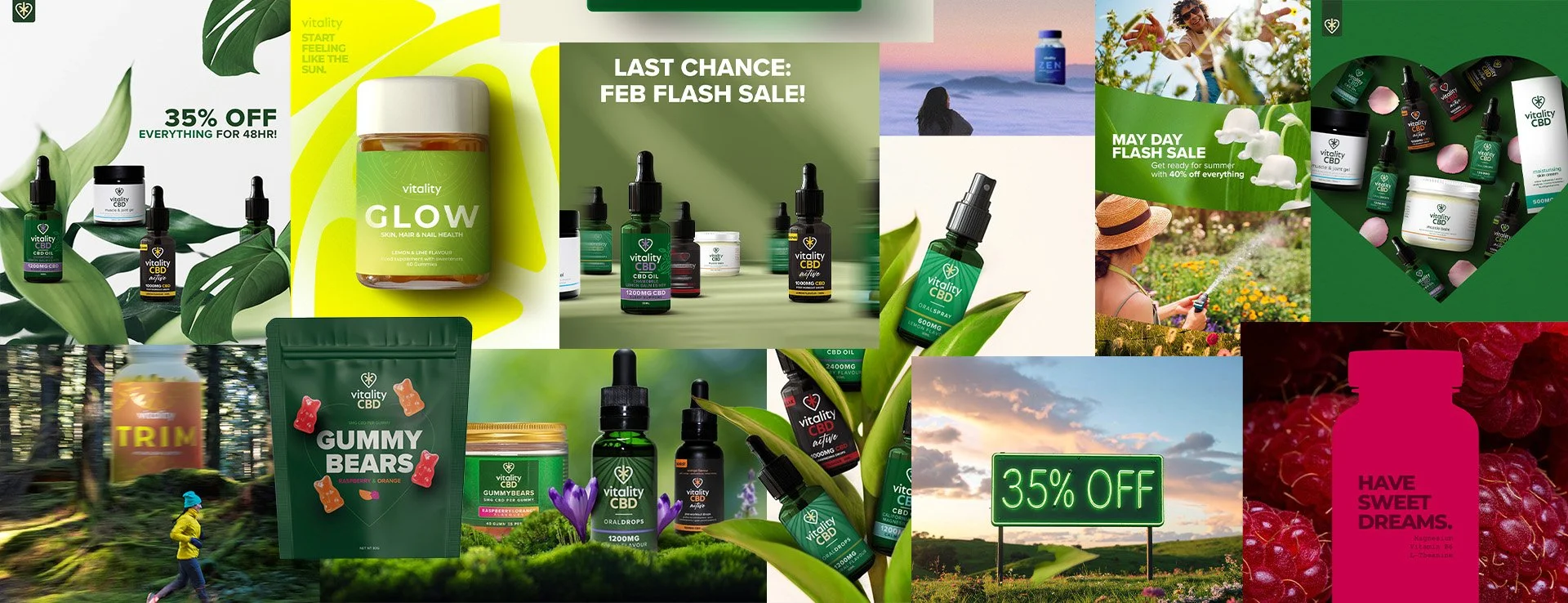 Vitality is a wellness brand offering CBD oils, topicals, and gummies designed to support sleep, anxiety relief, pain management, and recovery — all formulated with 0.0% THC.